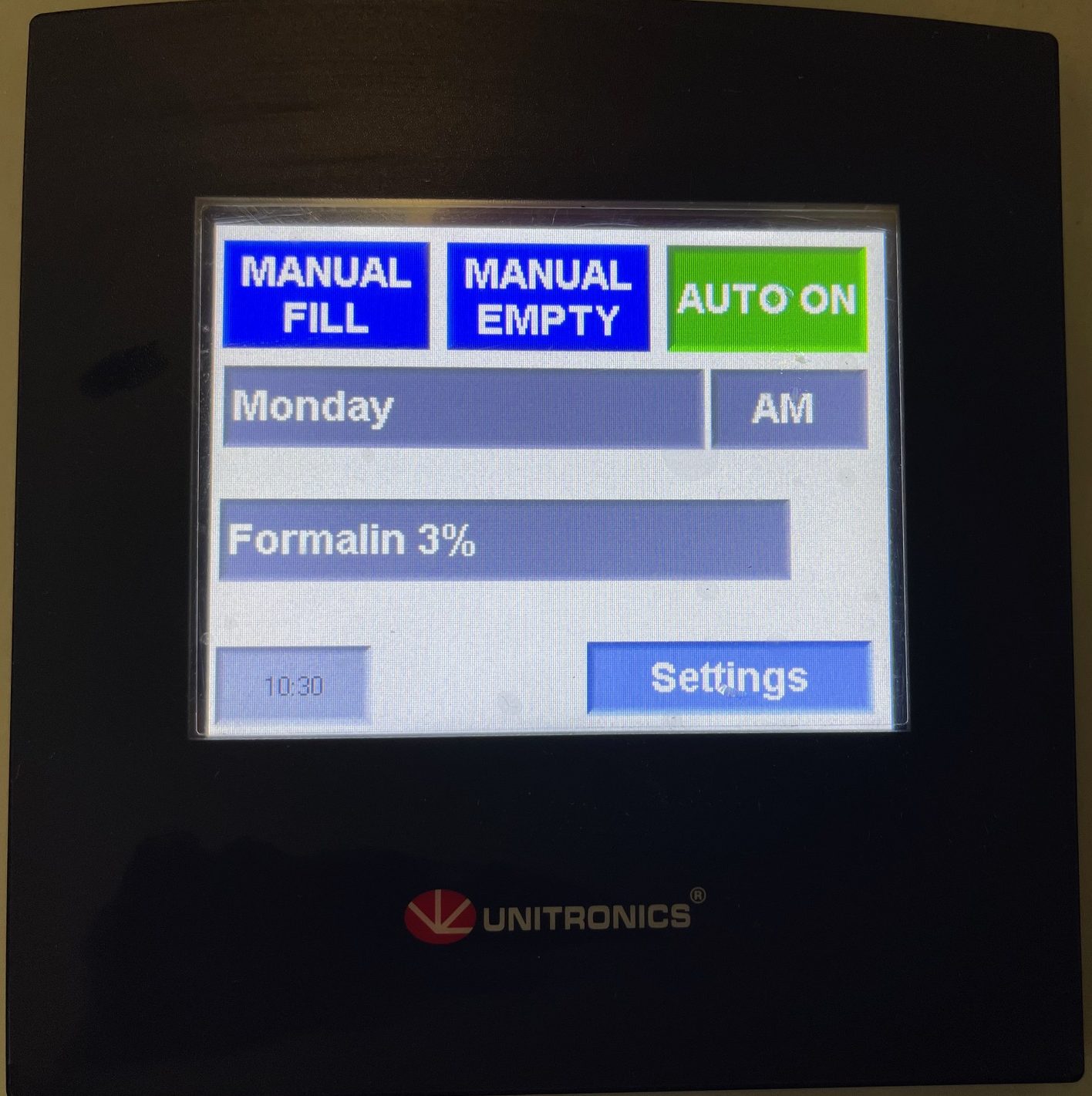 The bath is supplied with one chemical pump, but as many can be added as required for different treatments and recipes.