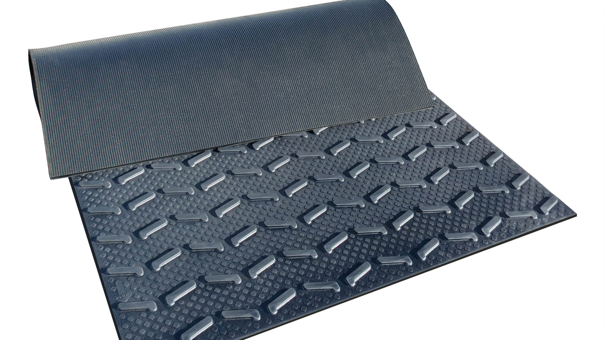 MONTA is specially designed for steep walkways. Beside helping to support the hoof, the V-shaped rib profile also promotes the drainage of liquids. Further, the square imprinting between the ribs boosts grip. In practice, the mat has proven its effectiveness on slopes up to 15% grade. It can be navigated in either direction. It is ideal for use on stationary, concrete loading ramps for transporting animals to and from the barn.